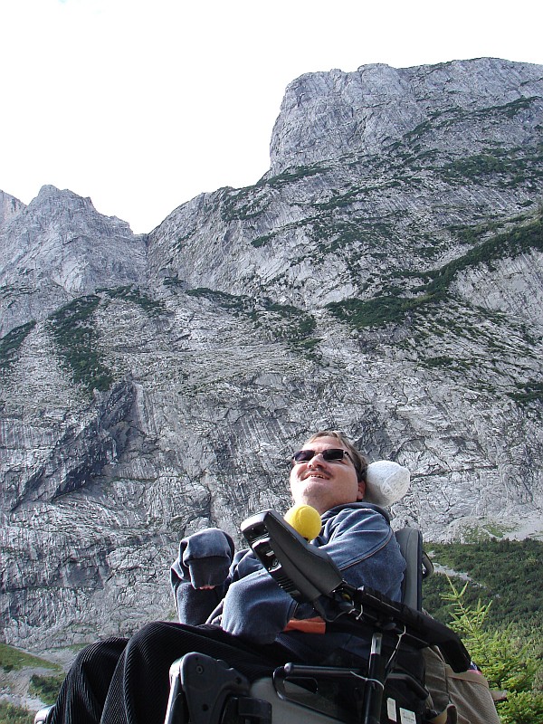 Náš cíl je Hinterer Gosausee a chata Hohe Holzmeister Alm. Zde jsme poněkud překvapeni, když se nás ptají, zda Kubu s vozíkem dopravil k jezeru vrtulník... je totiž prvním vozíčkářem, který toto místo navštívil.