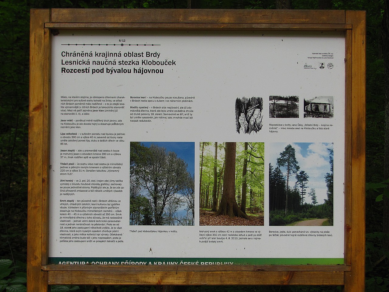 Za chvíli míjíme informační panel lesnické naučné stezky Klobouček a vpravo vidíme krásnou studánku U Kloboučku s možností posezení.