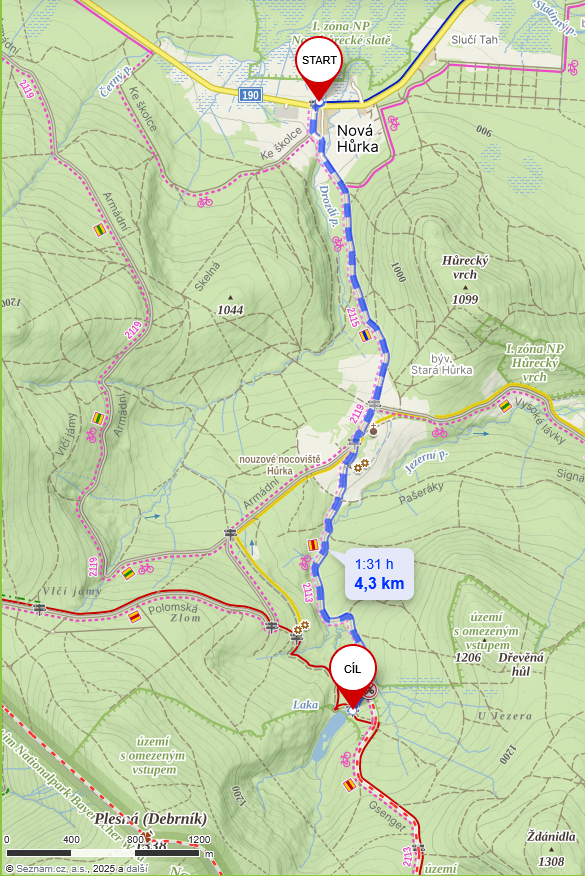 Trasa: Nová Hůrka - Jezero Laka a zpět stejnou cestou