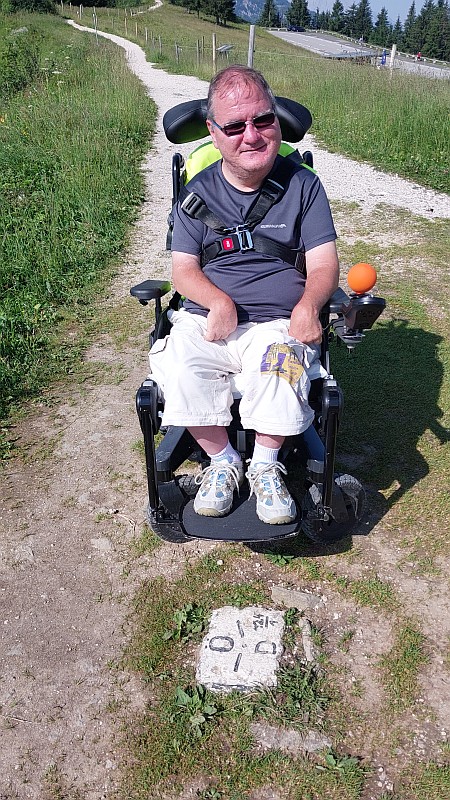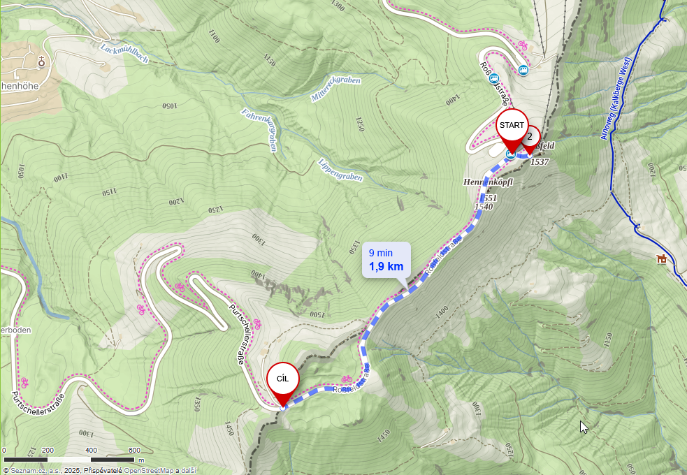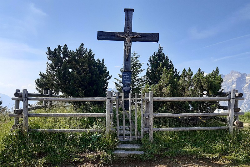 My zde absolvujeme část kolem vrcholového kříže a poté jdeme po chodníku k salaši Ahornkaser.